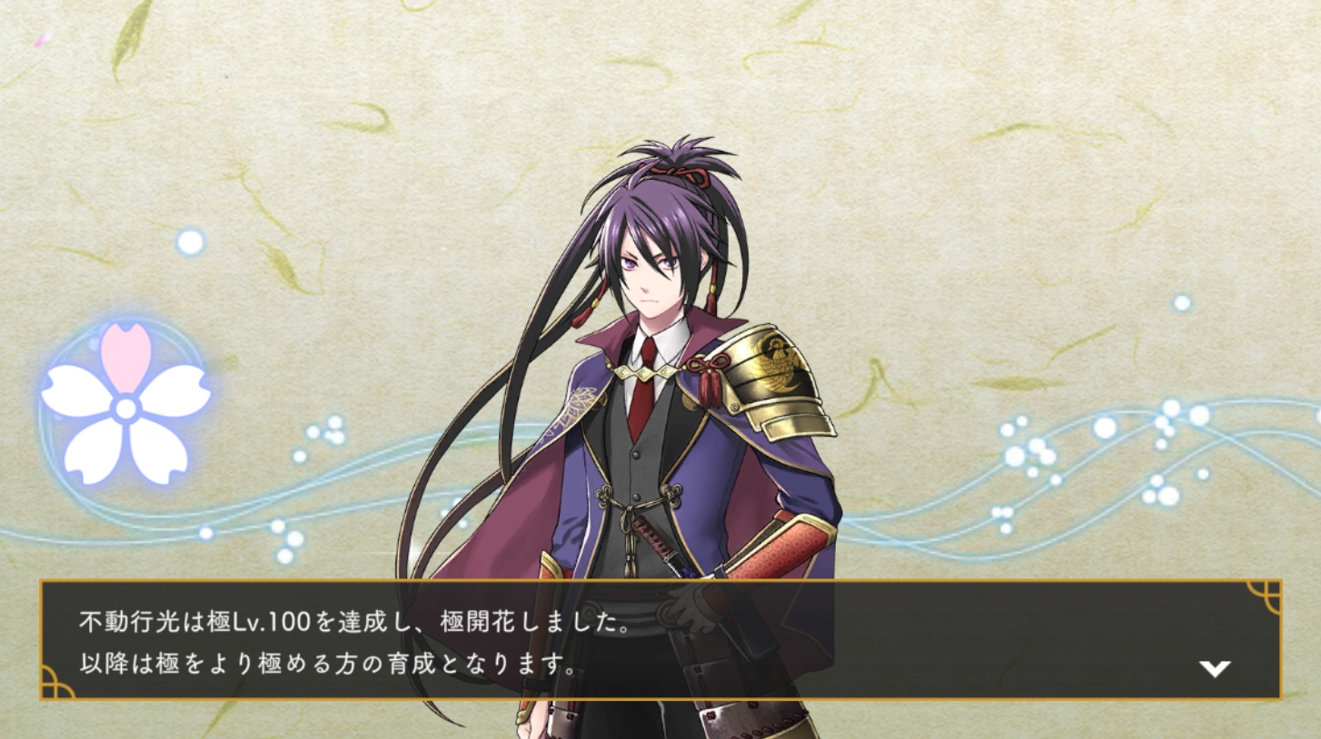 そうそう。次の極は桑名と松井だったねー。松井を修行に送りたいなーと考え中。修行道具の在庫は十分にあるんだけど、今すぐには育てられないしなーと思うと尻込みしてしまう。極開花が始まった以上、そんなこと言ってたら、どんどん極が遠のいちゃうのは分かってはいるんだけどね🤧