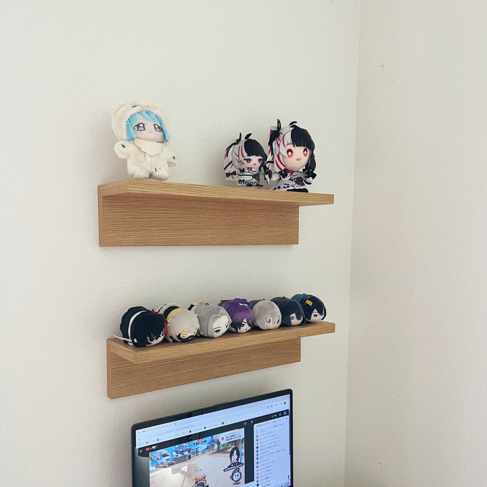 念願の夜見さんのにじぬいをお迎えしたはよかったものの、飾る場所がなくて困ってたので、前から欲しかった無印の壁に付ける棚を買ってきた✌🏻