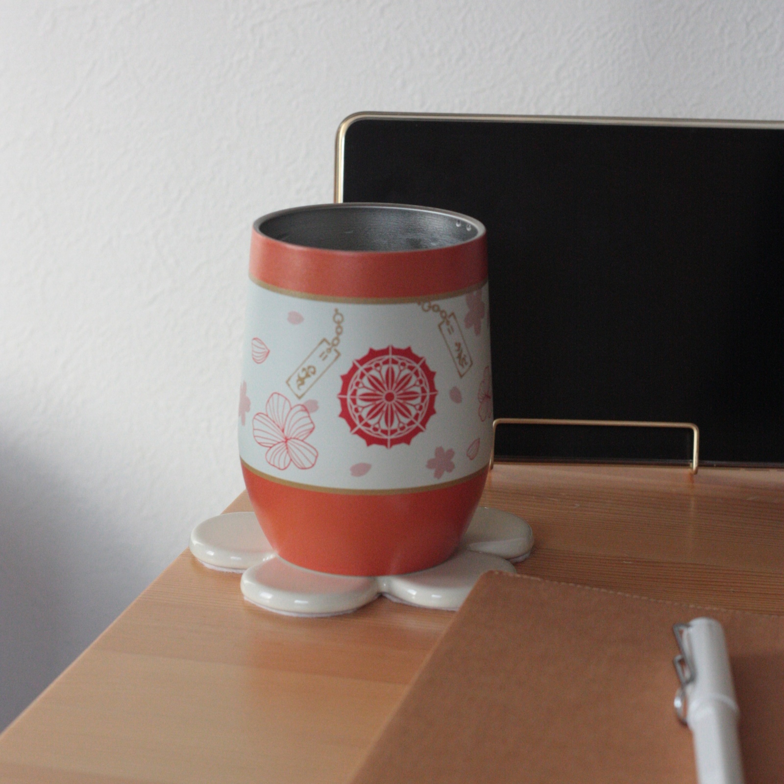 たまたまショッピングモールに遊びに行ったら売ってたので、と〜らぶコラボのタンブラーを買ってみた。大倶利伽羅と迷ったけど、ここ最近、自分的に脇差ブームがきてるので、火車切にしました。蓋付きだから保温性ばっちりで、めちゃいい感じ。使い易い。デザインもほどよく和風でいいなーと思う( ◜𖥦◝ )