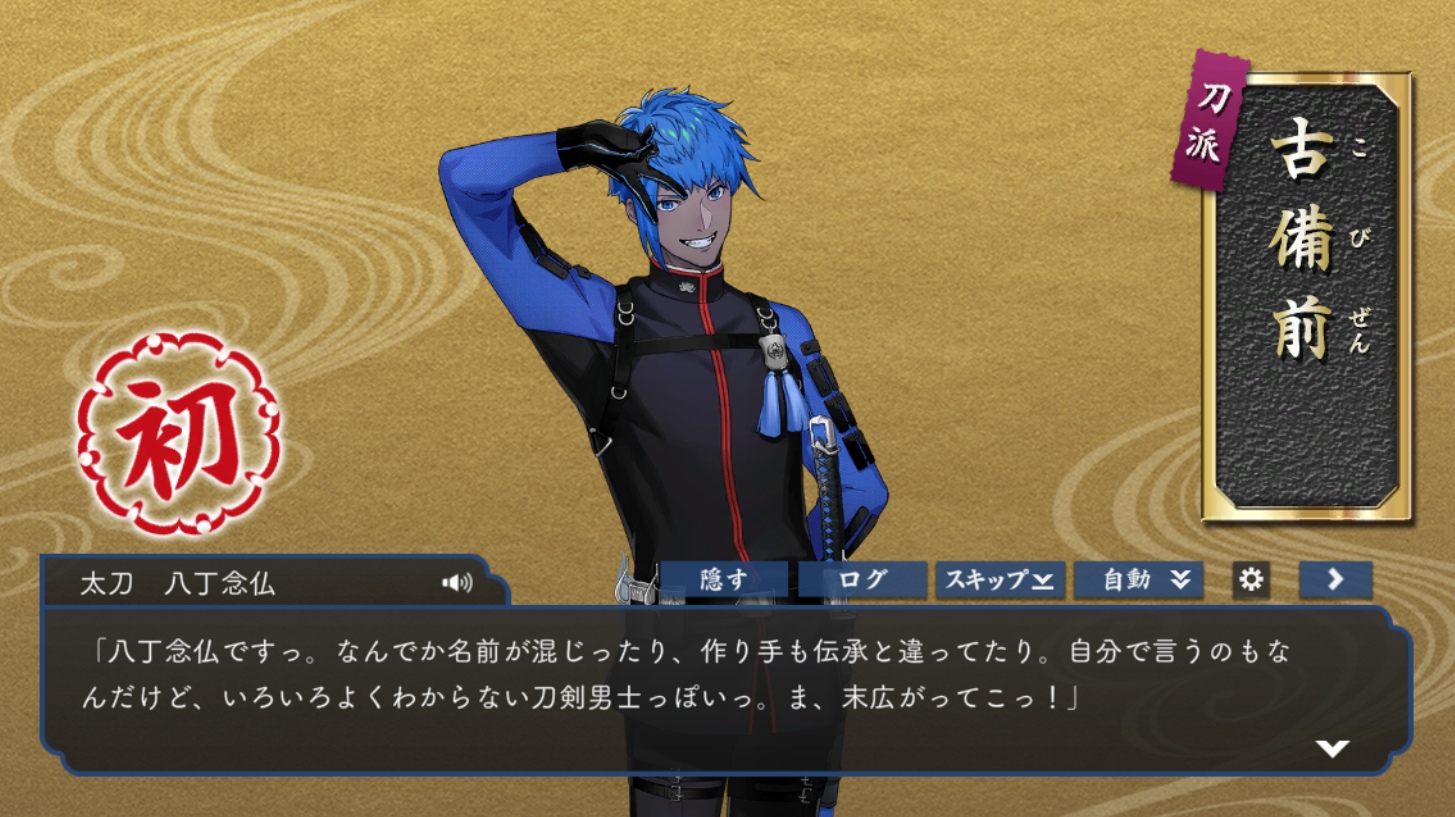 引き換え券で八丁念仏をお迎え。これで今現在実装されている刀剣男士が全振り揃った...!今夜解禁されるであろう、11周年記念の新刀剣男士は深追いしない予定なので、全振り揃ったのは本当に一瞬だったな🥲